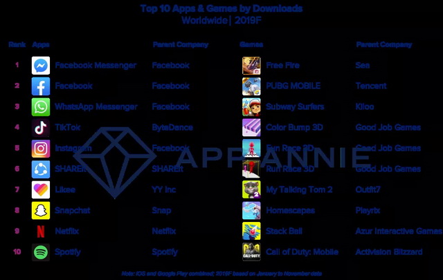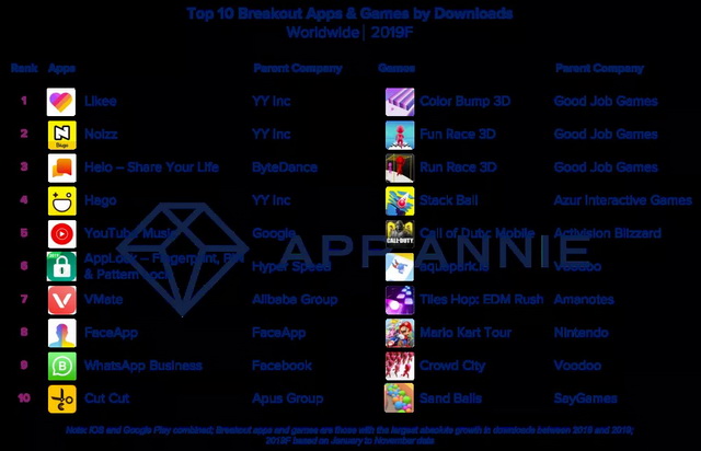 (App Annie 2019年下载量Top10排行榜)