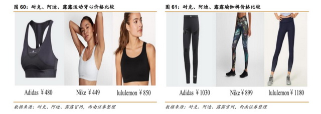 价格是个直观的影响因素。如果直观地进行价格比较,NEIWAI ACTIVE运动内衣主要在300-600元之间,实际上略低于Lululemon,但接近耐克、阿迪达斯,运动裤则在200-400元间,低于这些运动品牌。