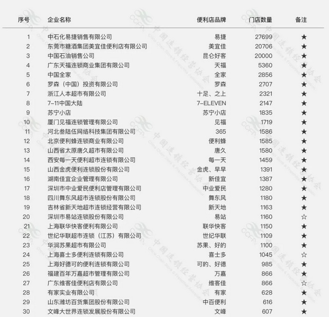 中国连锁经营协会发布的数据显示,2020年7月,美宜佳门店突破20000家,门店数量全国第二,超过昆仑好客。凭借这点,业内称美宜佳为“便利店之王”。
