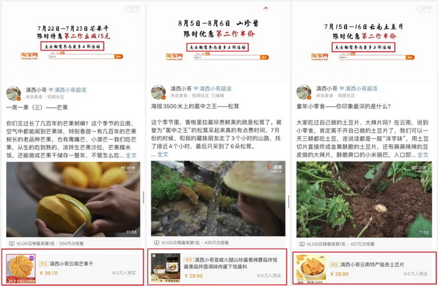 其次,对于加入视频号的创作者来说,以视频助推变现也是一个非常好的方式。博主可以通过视频建立自己的私域流量,给自己的店铺导流,完成变现。比如@滇西小哥,就会在视频号的视频中加入自己的淘宝店铺信息,配合视频下方的购物链接,直接将粉丝导流至自己的店铺,助力自己的流量变现,形成一个闭环。