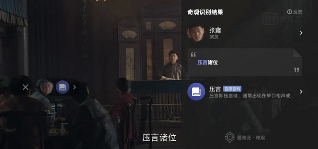爱奇艺奇观功能则演示了另外一种可能,即用户的观看需求是可以进阶的。这个功能推广后,用户不仅能通过奇观快速获取视频背后的信息,还能直接参与到探索信息的过程中,进而了解到自己真正想要获取的信息。以识别人物为例,用户在点击奇观后可即刻获得艺人或演员资料、过往作品等,也可以立即加入圈层进行交流。一站式的内容、搜索、社交体验是大众娱乐与粉丝经济、知识付费、电商等其他领域的交合尝试。