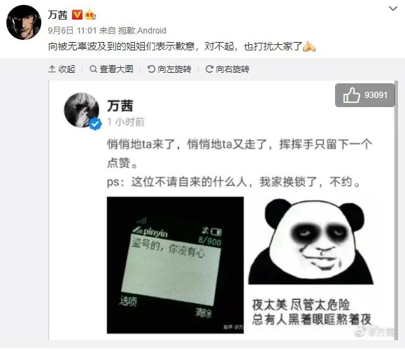 明星出现一些惊人言论或行为后,向外界宣布被盗号其实并非新鲜事物,但为何万茜遭遇了如此尴尬局面?