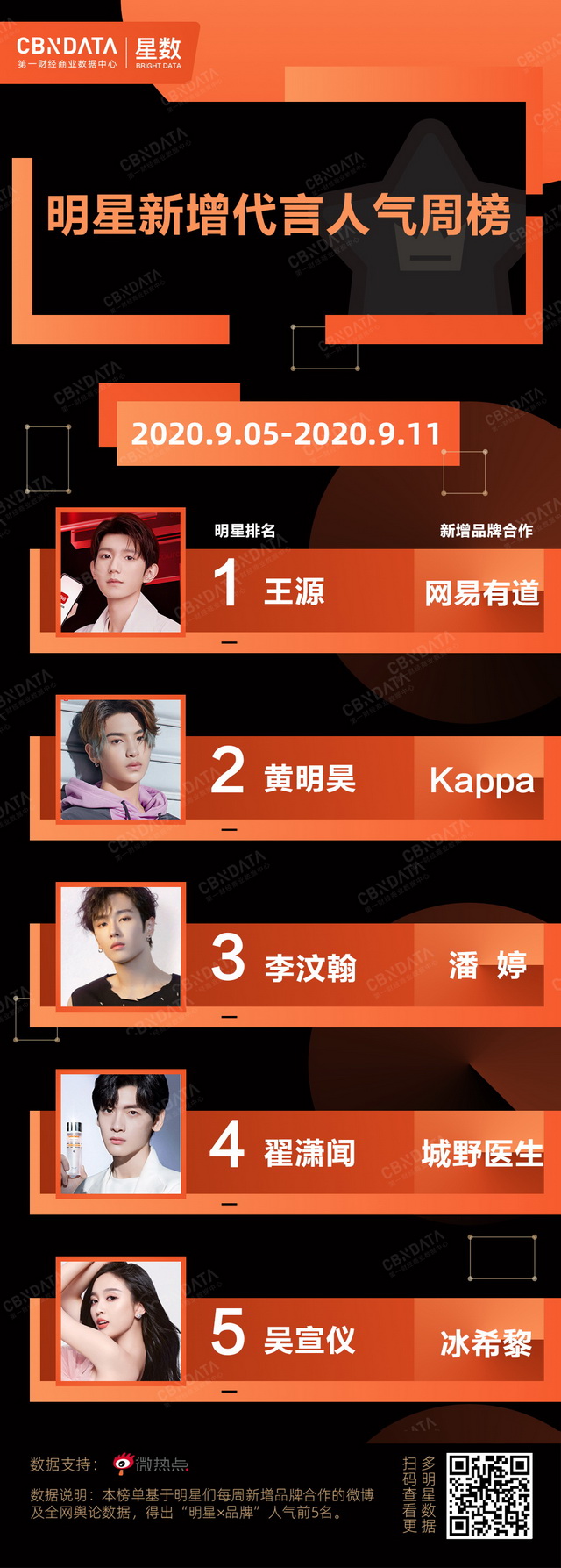 CBNData星数全新发布“明星新增代言人气周榜”及“明星代言周报”,聚焦美妆个护、食品饮料、家电3C、服饰鞋包、日化家清五大品类。用消费大数据的角度分析明星们的真实带货力。