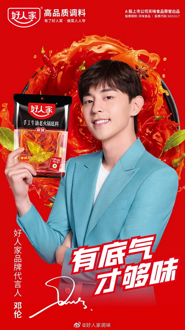 9月8号,好人家宣布邓伦成为品牌代言人。