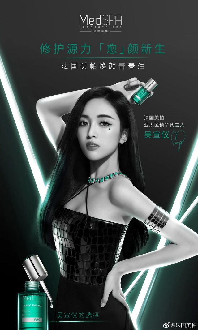 9月12日,法国美帕宣布吴宣仪成为亚太区精华代言人。