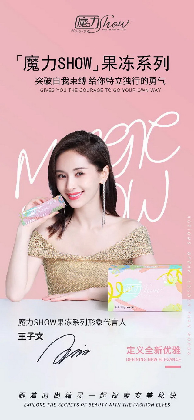 9月14日,魔力SHOW果冻奶茶宣布王子文成为品牌代言人。