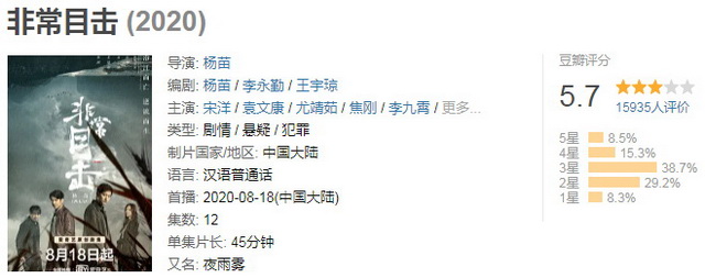《非常目击》作为爱奇艺“迷雾剧场”的第三部剧,在开播之前被寄予厚望,然而开播之后口碑急转直下。虽然该剧在制作和风格上依然匠心独具,但网友对于这样的创作似乎并不买账。