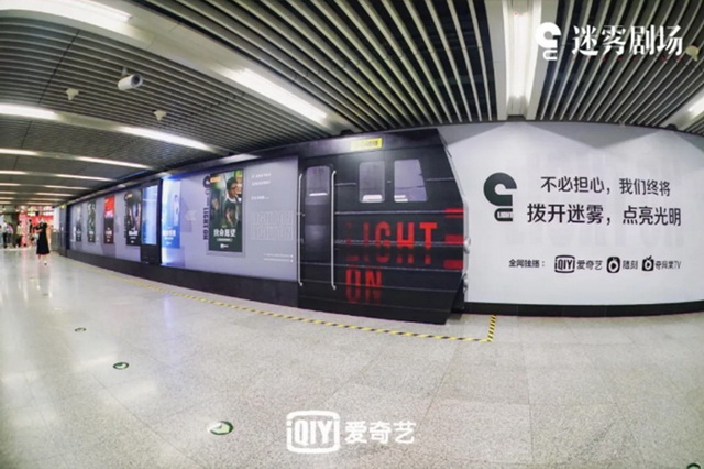9月19日,《沉默的真相》开播第三天,不少网友惊喜地发现,北京西单地铁站出现了“迷雾剧场”的创意广告展。现场神秘列车概念海报、剧场片单海报合集,再加上动态的“列车与迷雾”主题海报,定制台词车票打印互动装置和全场循环播放的迷雾背景音乐,吸引众多剧迷现场打卡。