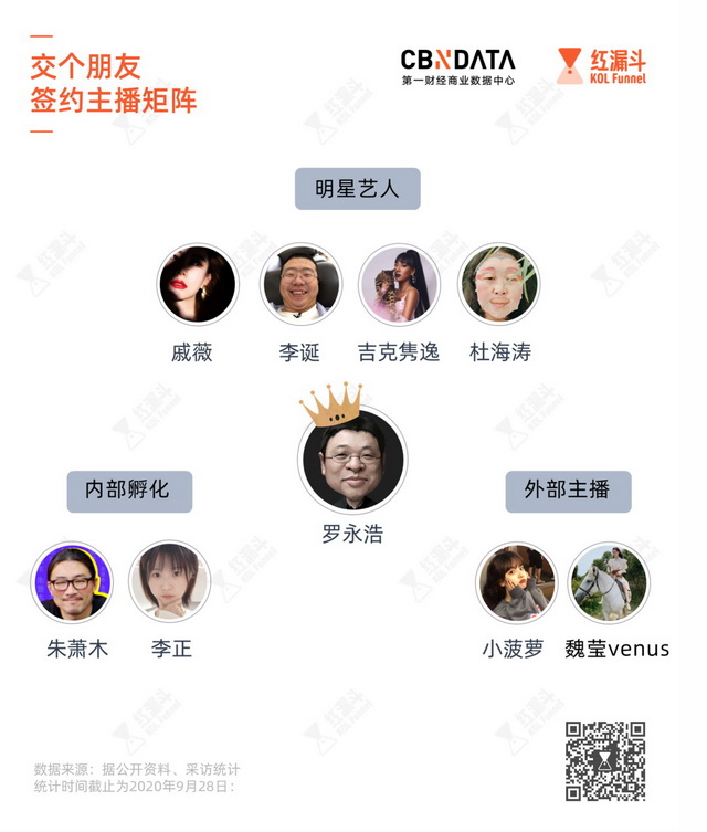 据C站盘点,交个朋友签约的主播,远不止罗永浩一人。这些主播的构成,主要分为三种。