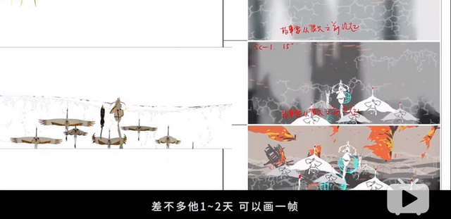 “下意识地去做一些东西,这在我们行业里面还蛮常见的,不少人看到基本上大家都这么做,就会想那我们也这么做好了。”王昕觉得,《姜子牙》水墨画的意境具有很多的“随机性”,并不是靠机械的公式就能解决的,得整个团队不断去思考、感受意境,才能提笔成书。