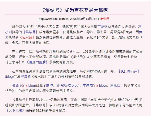 《集结号》成2008年百花奖最大赢家(图片来源:新华网)