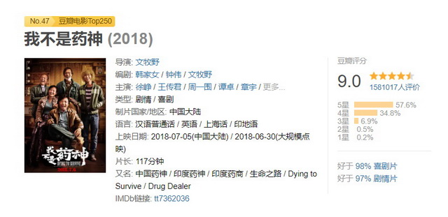 凭借该片,徐峥成为了历史上第一个夺得年度票房冠军的70后导演,打破了2002年以来第五代们对于票房冠军的“垄断”,也结束了“大片”对市场的“垄断”。