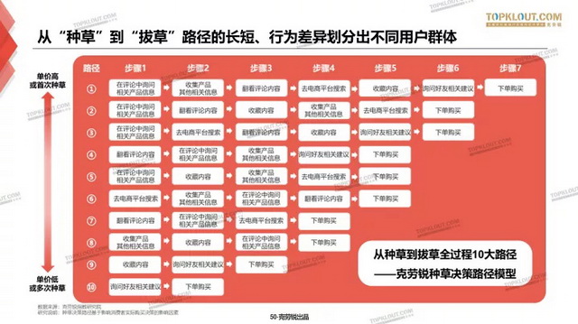 根据克劳锐研究得出的“克劳锐种草决策路径模型”,不同的决策周期、长短不一的决策路径划分出了行为差异较大的用户群体。