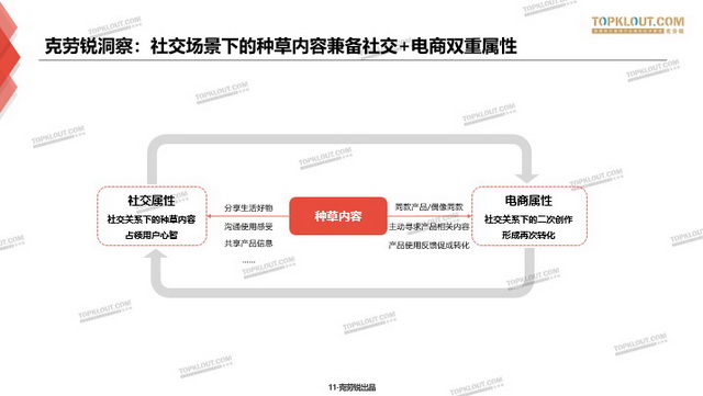 在社交场景下,种草内容已兼备社交与电商属性:种草阶段,被种草用户通过社交关系不断把品牌内容传递给其他用户;后种草阶段,基于产品使用,用户在产品反馈的过程中成为新的种草者,将种草链条不断扩展。
