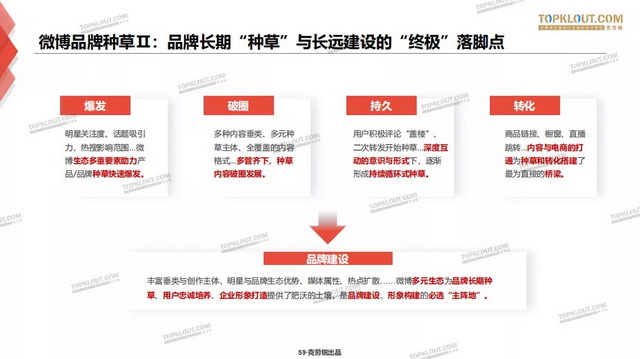 微博集快、广、深等特点于一体,各大品牌在微博上既可以借势明星、热点完成快速引爆,也能够借助平台强大的互动性和各种营销工具完成长效渗透式种草。这样多元的种草方式对有种草需求的品牌产生了强大的吸引力,使得品牌无论选择在哪一平台以何种方式种草自有产品,最终都会回到微博这个“草场”,耕耘浇灌,期待收获。