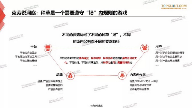 社交平台可称为各领域品牌内容种草的“场”,每一个“场”由不同的要素构成,同时又有着不同的场内语言与场内文化,“种草”也因此成为了一个需要遵守“场”内规则才能玩得更好的游戏。