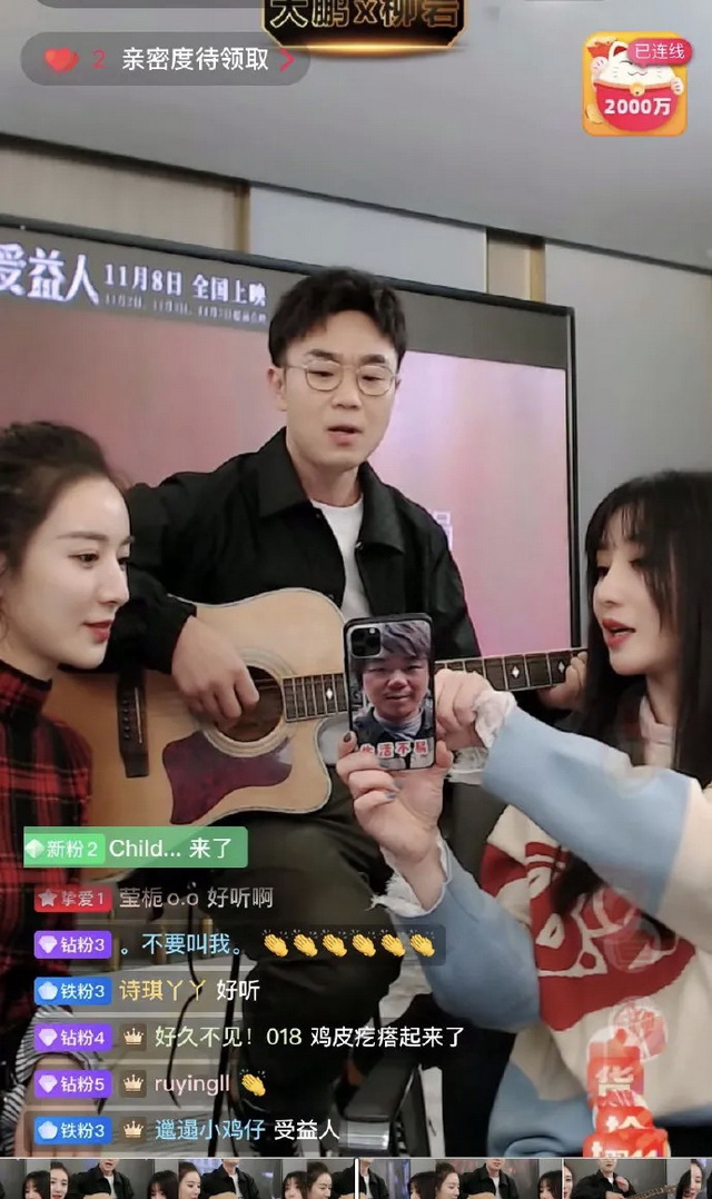 薇娅卖一款小零食只需要花两三分钟,但大鹏和柳岩在600多万人观看的直播间里聊拍摄幕后、秀吉他弹唱,足足待了半个小时,还斩获了多个平台热搜,也被行业视为电影宣发的创新之举。