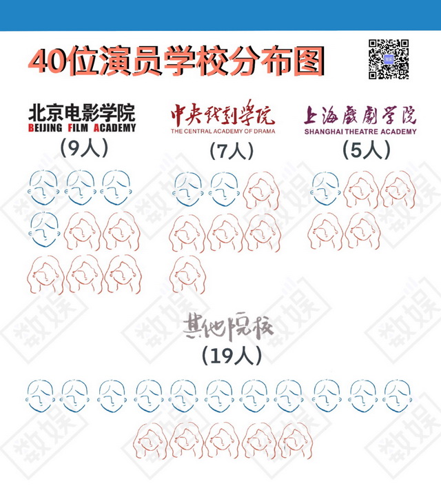 根据公开资料统计,来自中央戏剧学院、北京电影学院和上海戏剧学院科班出身的演员一共21位,其余的则来自国外大学、国内综合大学以及大中专院校等。值得注意的是,非职业出身的演员近乎一半,更重要的是,8个S级演员中,有4个非科班出身,占据了目前一半的名额。