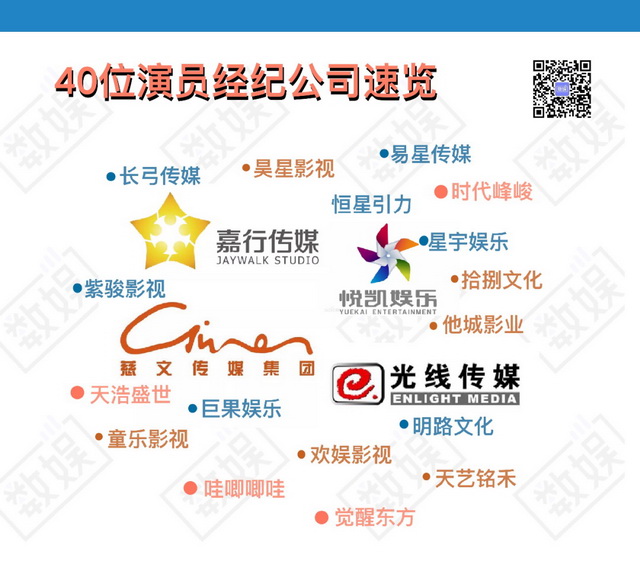 在今天这个时代,演员靠单打独斗已经很难立足了,背后的资源推手似乎更有决定权。40位演员背后经纪公司,既有光线、慈文等老牌影视公司,也有成立不久的新公司。