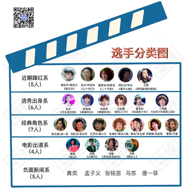 最后细看参赛演员的过往标签,会发现统共能分为五大类。