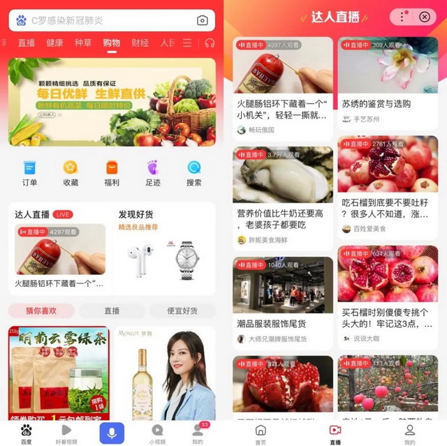 近日,百度APP上线“购物”频道,所售商品包括电子产品、日用百货、生鲜水果、美妆洗护、服饰家装等各个品类。目前,百度APP“购物”频道下设“达人直播”、“发现好物”等板块。