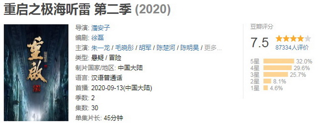 《重启之极海听雷第二季》作为南派三叔收回《盗墓笔记》版权后亲自监制、编剧的首部系列IP,第二季豆瓣评分7.5,比第一季还涨了0.1分。南派三叔“重启”,算是站稳了脚跟。