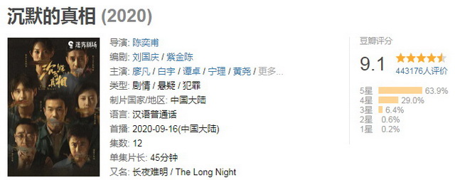 其中,《沉默的真相》突破了悬疑剧集的口碑天花板。豆瓣评分高达9.1,44W+人评价,如果不出意外,这将是今年国产剧最佳、豆瓣评分最高的作品。这让爱奇艺“迷雾剧场”成为了具有标杆性质的悬疑剧厂牌,并引领了国产剧集的“短剧集”风潮。