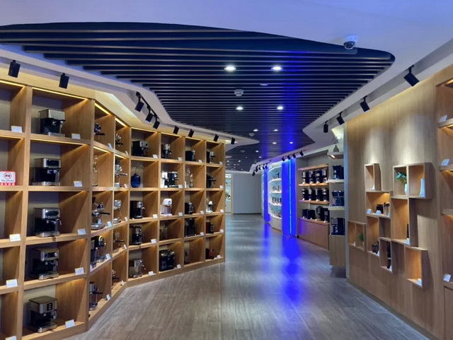 这家公司的展厅,陈列了从咖啡机到母婴消毒器等数十种小家电。仅是不同款式和材质的多士炉,就摆满了整一面墙。这都还只是新宝过去20年为海外品牌代工生产的部分产品。