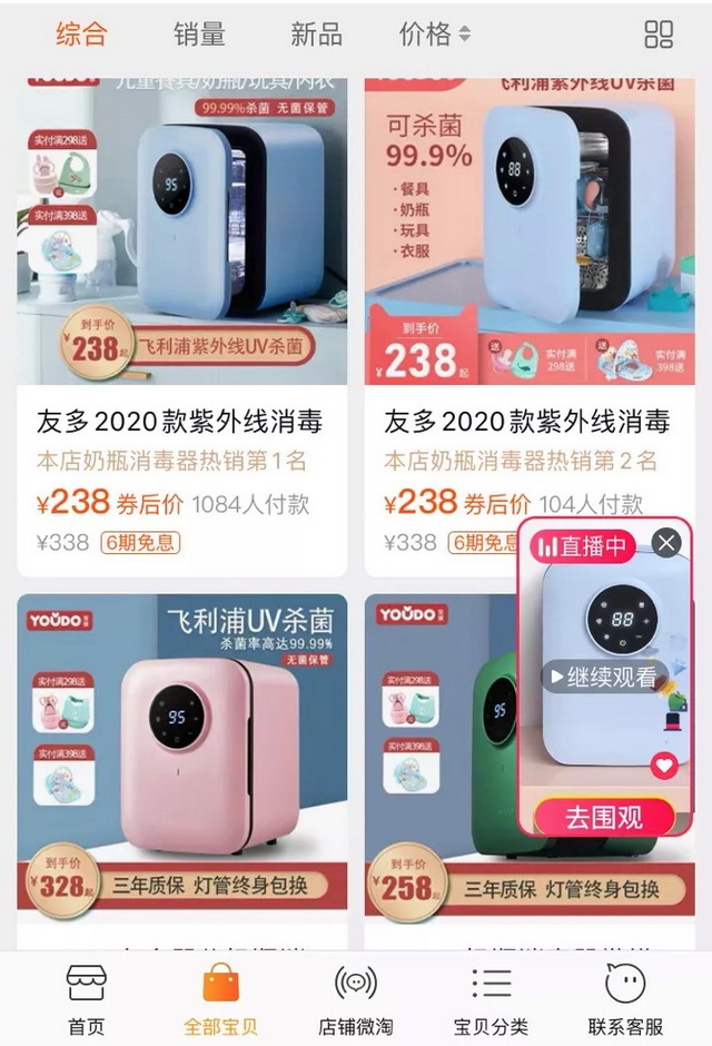 一家名为“友多”的新品牌,天猫旗舰店不过7款商品,粉丝2000多人。但一款看起来很小众的奶瓶消毒柜,也能月销1200件。