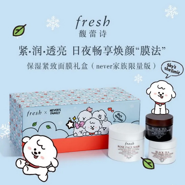 10月23日,Fresh馥蕾诗宣布与李佳琦的狗狗IP奈娃家族推出联名款面膜礼盒。10月20日,奈娃家族又宣布与偶像王源创造的ROY 6 IP形象推出联名产品。以上产品将于11月8日在李佳琦直播间的奈娃家族专场直播中开售。