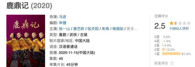11月15日,由张一山、唐艺昕主演的电视剧《鹿鼎记》在央视八套和爱奇艺、优酷播出。本来备受期待,张一山一度被认为是饰演韦小宝的最佳人选。