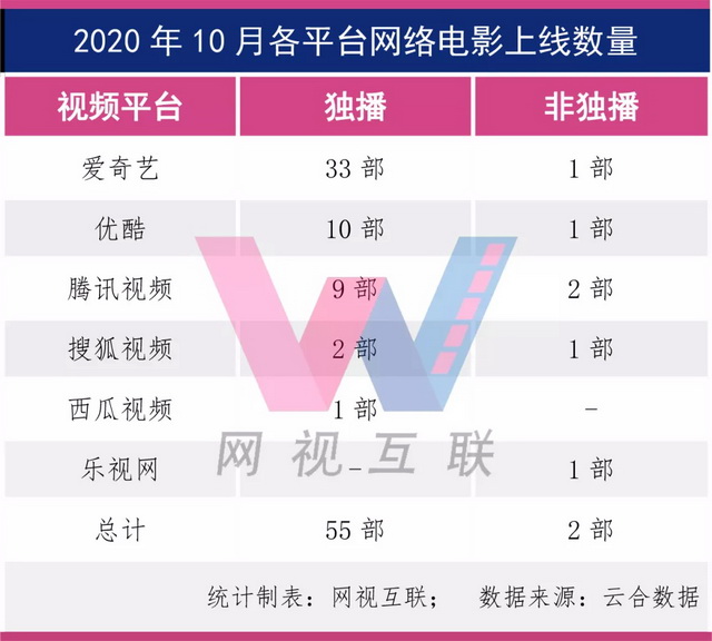 就上线数量而言,10月份创造了2020年网络电影的最低纪录。