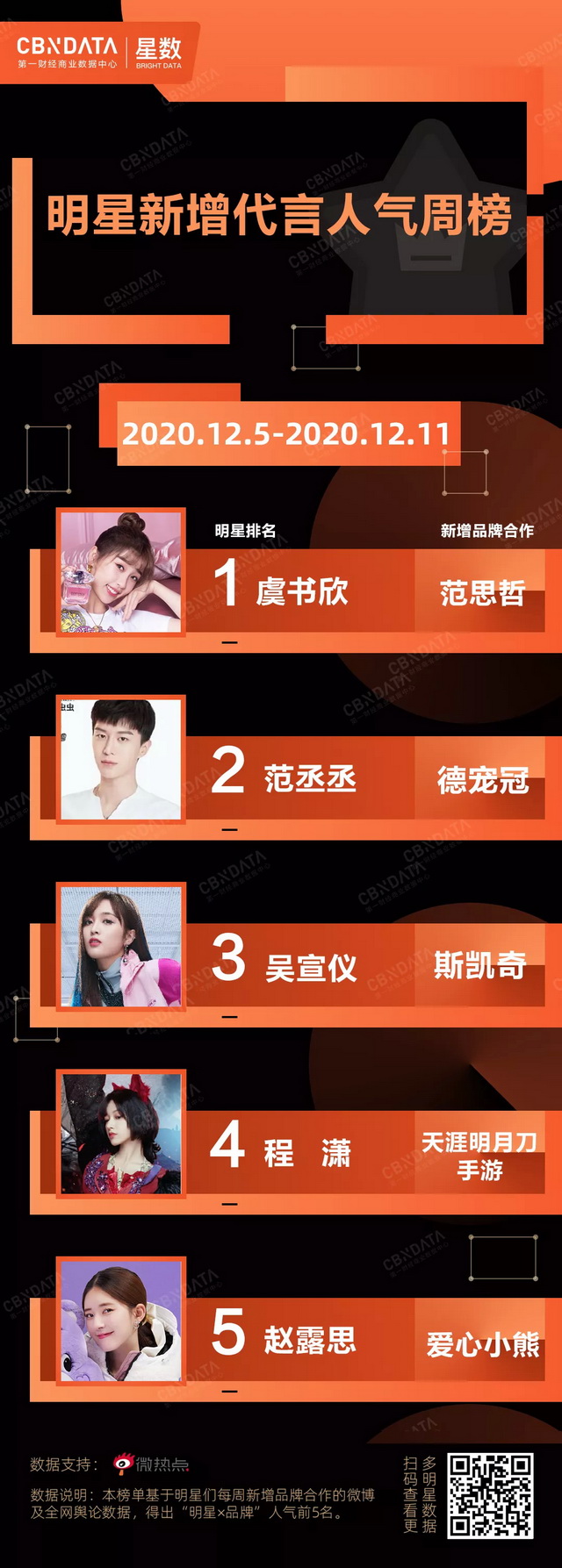CBNData星数全新发布“明星新增代言人气周榜”及“明星代言周报”,聚焦美妆个护、食品饮料、家电3C、服饰鞋包、日化家清五大品类。用消费大数据的角度分析明星们的真实带货力。