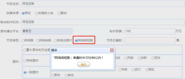 行至年末,互联网视频内容的硝烟不断。相信很多从业者早已注意到,国家广电总局重点网络影视剧信息备案系统新增了“网络微短剧”类别。这一类别规定了网络微短剧为单集不超过10分钟的网络剧,意味着微短剧已经形成不可忽视的内容新品类,并被纳入监管。同一平行的类别里的“网络剧”“网络电影”“网络动画片”目前均已成为红海。