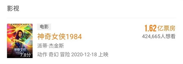进入12月后,大盘并未如预期那样迅速回暖。12月18日,好莱坞超英大片《神奇女侠1984》和提档的《紧急救援》同天上映。但受制于观众预期与影片内容错位、海外流媒体同步上映等等因素,《神奇女侠1984》迄今国内票房仅为1.62亿。《紧急救援》也远没有达到导演林超贤前作《红海行动》的热度,甚至没能在2020年结束前达到5亿体量。