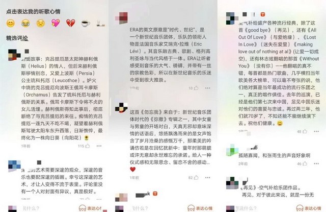 凭借着齐全的分类和内容,虾米音乐吸引来了大批深度乐迷。乐迷们会在这里对专辑封面做释义,补充歌手信息,对歌曲的历史背景加以阐释。他们聊编曲,聊乐器,聊歌手的故事,相征告诉毒眸(微信ID:DomoreDumou),他曾就一个歌曲种类的问题在虾米音乐评论区跟用户一遍一遍地讨论,“那是一个蛮乌托邦的氛围。”