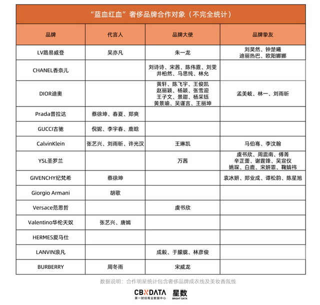 时尚圈广为流传着“六大蓝血、八大红血”的说法,以此来划分奢侈品牌的地位。而这14大品牌也有着各自的明星合作阵营。