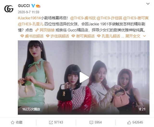 有节日主题的宣传,如七夕情人节期间,GUCCI邀请林彦俊、赵露思、丁禹兮、周洁琼、胡一天、姜贞羽等6位年轻明星组成三对限时CP,拍摄不同剧情的青春爱情微电影;有偶像主题的宣传,在THE9出道后,GUCCI选取了虞书欣、许佳琪、谢可寅、孔雪儿等四位成员组成小分队为新品拍摄剧情短片。