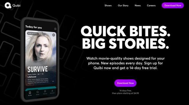 2018年,Quibi从11位投资者和好莱坞主要电影制片厂筹集了10亿美元的资金,其中包括迪斯尼,NBCUniversal,索尼影业,华纳,Liberty Global,ViacomCBS和阿里巴巴等。创始人Katzenberg试图挑战从有线电视频道到Netflix几乎所有初创企业使用过的最成功的公式。