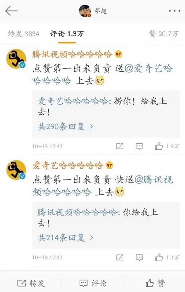 这一合作也罕见地出现了一部综艺有两个官微的情况