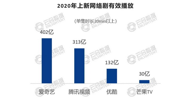 芒果的成功不只一部《浪姐》,根据云合数据发布的《2020年网络剧综节目观察》,在爱优腾芒中,芒果TV是唯一实现全网剧集有效播放量同比增长的平台,增长率达到34%。