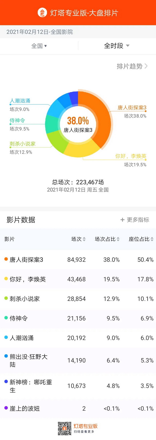 而根据毒眸联合灯塔研究院毒眸发布的《2020中国电影市场用户报告》,过去三年春节档都体现出较强的头部效应,由三部头部电影收获了80%的票房。这意味着,接下来还会有一部电影有机会进入80%俱乐部。