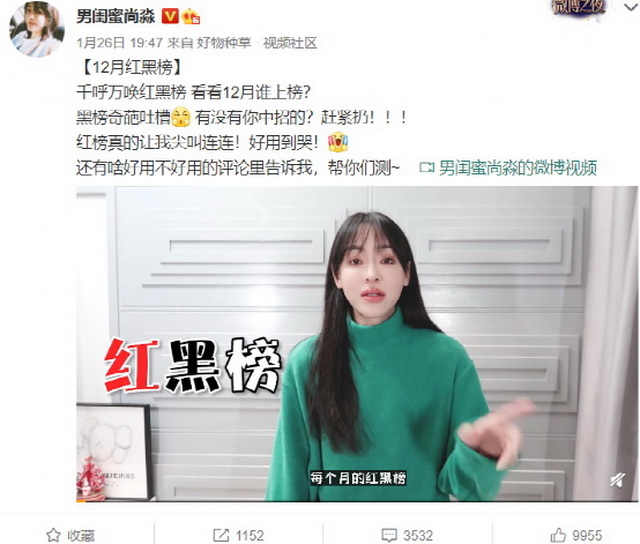 此外,尚淼还是一位专业的好物推荐官与评测官,相比很多美妆博主的含蓄点评,尚淼犀利地进行每月“红黑榜”总结,红榜上是好用的物品推荐,黑榜上则是因功能、成分等原因存在不足之处的“坑”。这个每月固定的栏目,广受粉丝好评,每到月底,很多粉丝会在评论区“催更”,催促尚淼尽快更新本月的红黑榜,助她们避坑。