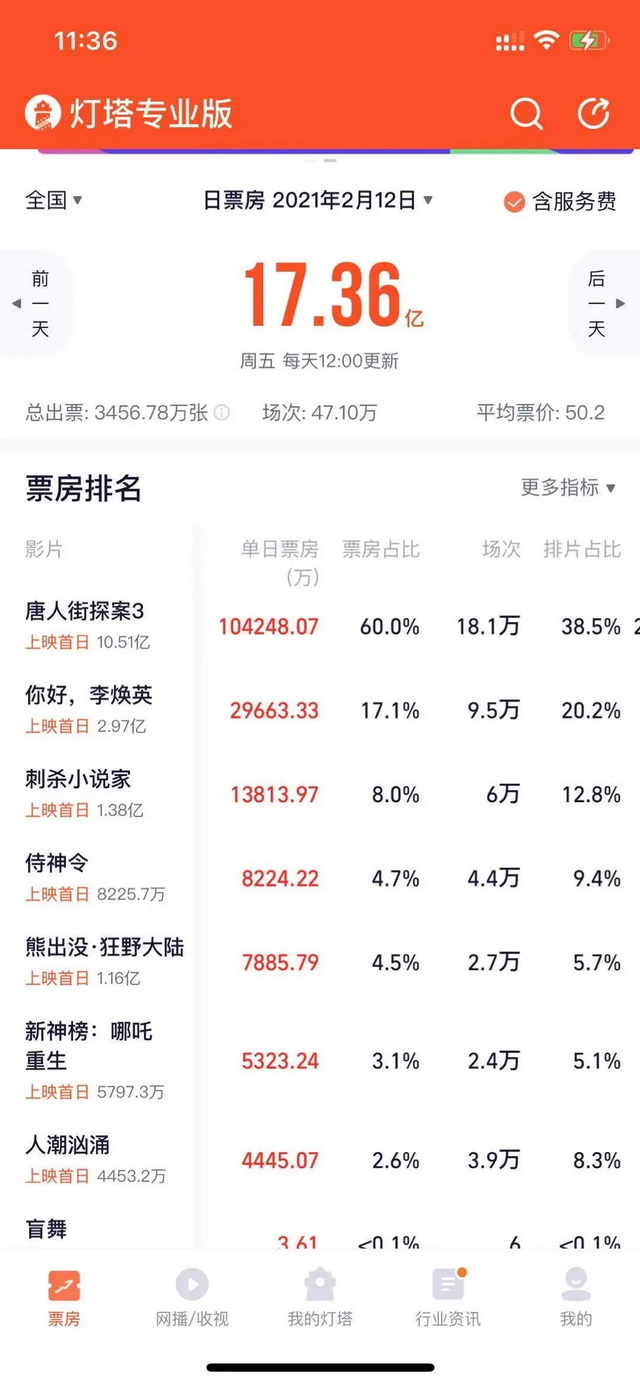 单日票房占比超过了60%,上座率达到惊人的71.3%,《唐探3》几乎以一己之力加热了春节档的首日票房。