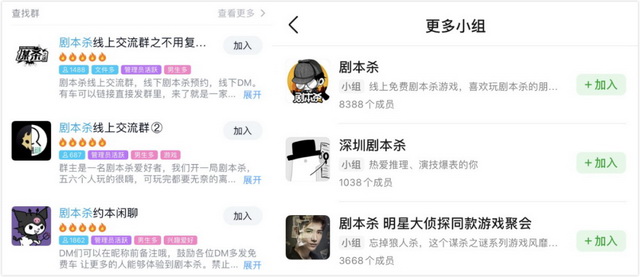 当然,除了在游戏中,我们所提到的线上游戏社群无疑也是剧本杀的又一衍生,成功将更多剧本杀爱好者聚集在了同一个社群,同一个兴趣圈层,让大家能够更好地围绕着剧本杀这一话题进行社交,满足年轻人的社交需求。