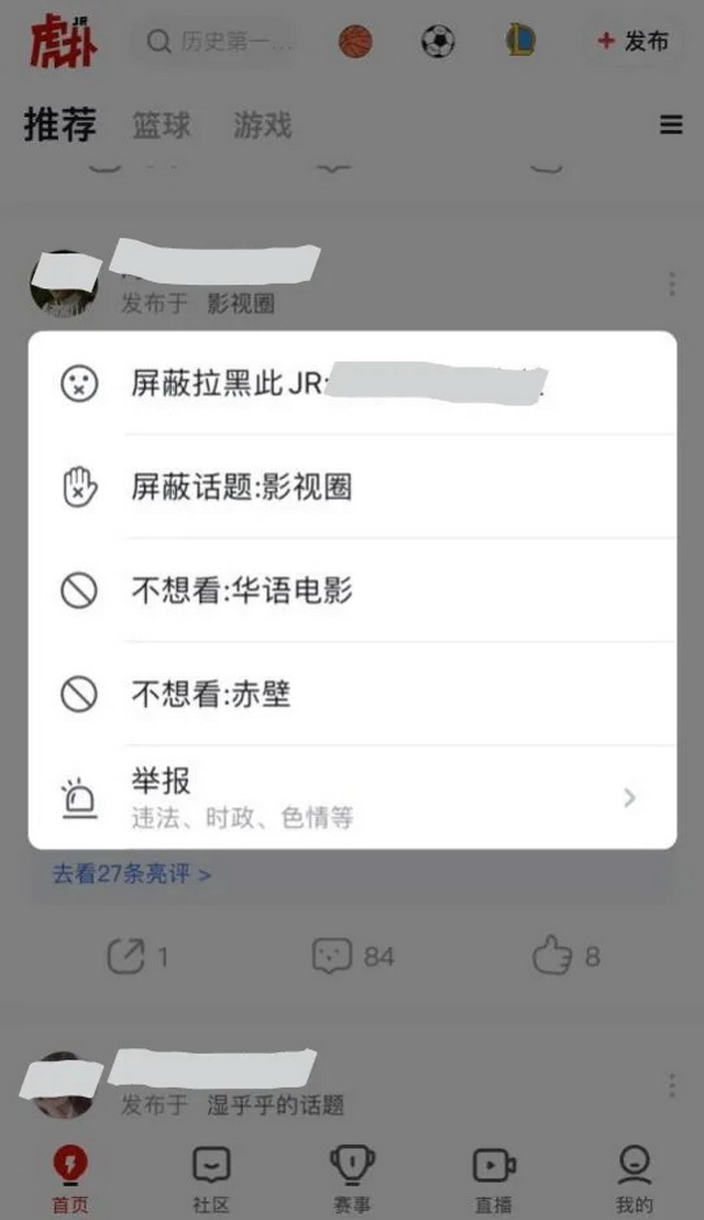 与微博评论只能点赞不同,虎扑的评论可以“点亮”和“点灭”。这保证了前置的“高亮评论”喜欢的人远比不喜欢的人多,如评论“被灭”次数过多,系统会将其折叠,不影响浏览体验。