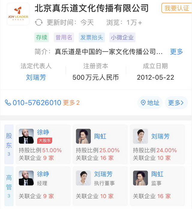 其中,《做梦吧!晶晶》是由北京真乐道文化备案的明星恋爱爆笑微短剧。企查查显示,北京真乐道文化则是徐峥、陶虹夫妻创办的影视公司,其中徐峥持股51%,陶虹持股25%。