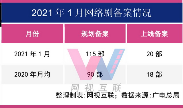 然而2021年的1月份却是个例外,网剧备案数量令人惊喜。
