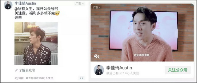而朋友圈卡片视频和文章底部广告推荐的终点,也就是微信公众号“李佳琦Austin”,目前来看主要功能是直播相关内容的同步、产品种草以及为社群引流。