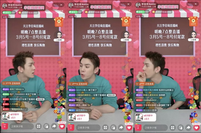 其次是李佳琦作为一个带货主播的职业需求。李佳琦的直播几乎是每天一场,直播间中所卖出去的产品也非常多。据公开数据显示,李佳琦曾经在365天内直播了389场,而他在去年双11更是创造了近百亿的GMV。